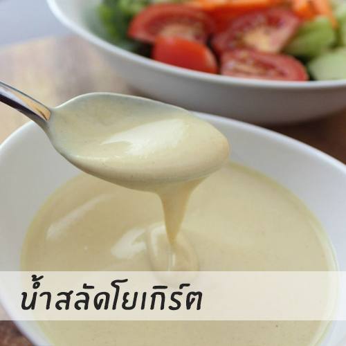 ใส่เครื่องปรุงทั้งหมดลงในถ้วย ผสมคลุกเคล้าให้เข้ากัน แค่นี้ก็เสร็จแล้ว เวลาจะทานก็แค่ราดลงไปบนผักสลัดตามแต่ชอบได้เลย (เปลี่ยนรสของโยเกิร์ตเป็นพรุน สตรอเบอรี่ บลูเบอรี่ก็ได้ทำให้ได้หลายสีสัน)